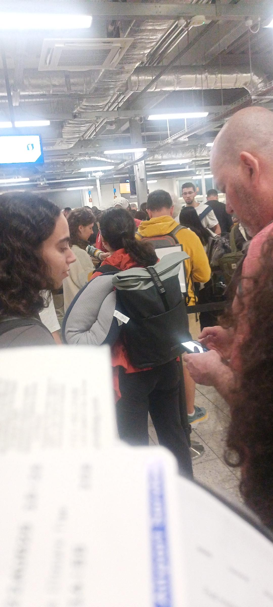 Мы спустились из зала вылета, где до прохождения всех процедур нечего съесть и выпить, в зал прилета, где все это есть. Кофе и пара плюшек позволили скоротать время и оказались последней пищей до самого финиша маршрута. Но вот час пробил, и мы встали в длиннющий хвост, рывками двигающийся в сторону стоек регистрации. Это, конечно, не старые времена, когда отправляющихся в дальний путь израильская служба безопасности по одному отводила в сторонку и, проницательно заглядывая в глаза, задавала в разбивку важные и неважные вопросы. Такая милая беседа могла занять минут десять, а то и больше. Однако, и нынче внимательно в глаза глядят, задают формальные вопросы и иногда вдруг застревают надолго. Мы, когда добрели, наконец, до проверяльщиков, с этим препятствием справились легко - зарегистрировались и поползли дальше через круги аэропортовского ада.