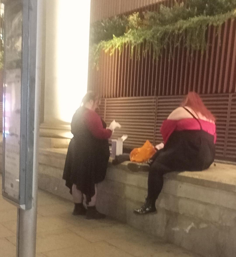 Наконец мы оказались на ночной остановке шаттла возле вокзала Виктории, по соседству с которым где-то в ресторане коротали время Маша и Степа, и они еще не добежали до нас. Так что первыми лондонскими аборигенками для нас стали экстравагантная парочка дам по соседству с остановкой.