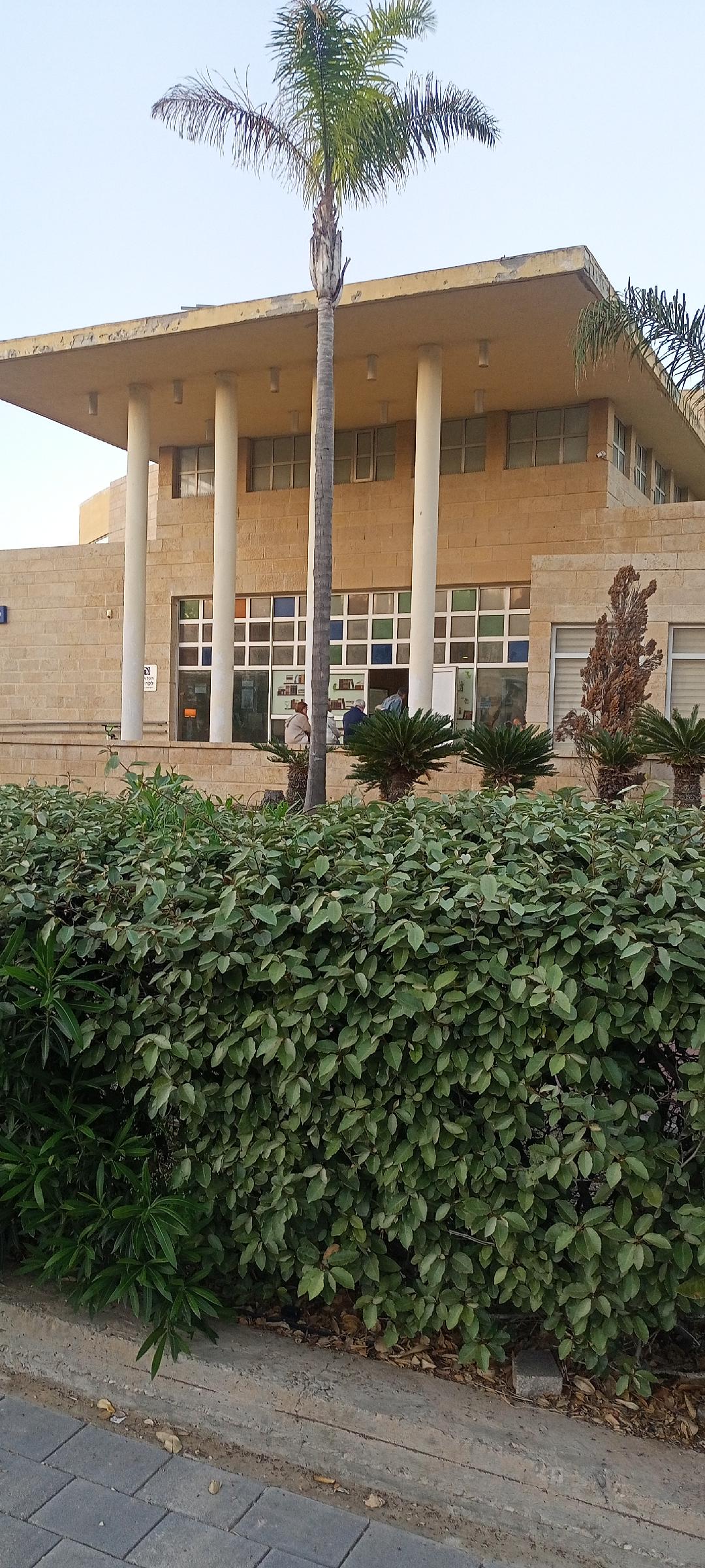 Миновали центр, а дальше пошли строения, так или иначе связанные с культурной активностью города, и среди них – городская библиотека, выделяющаяся из окружающих хрущоб израильского извода, своей приятной глазу оригинальной архитектурой.